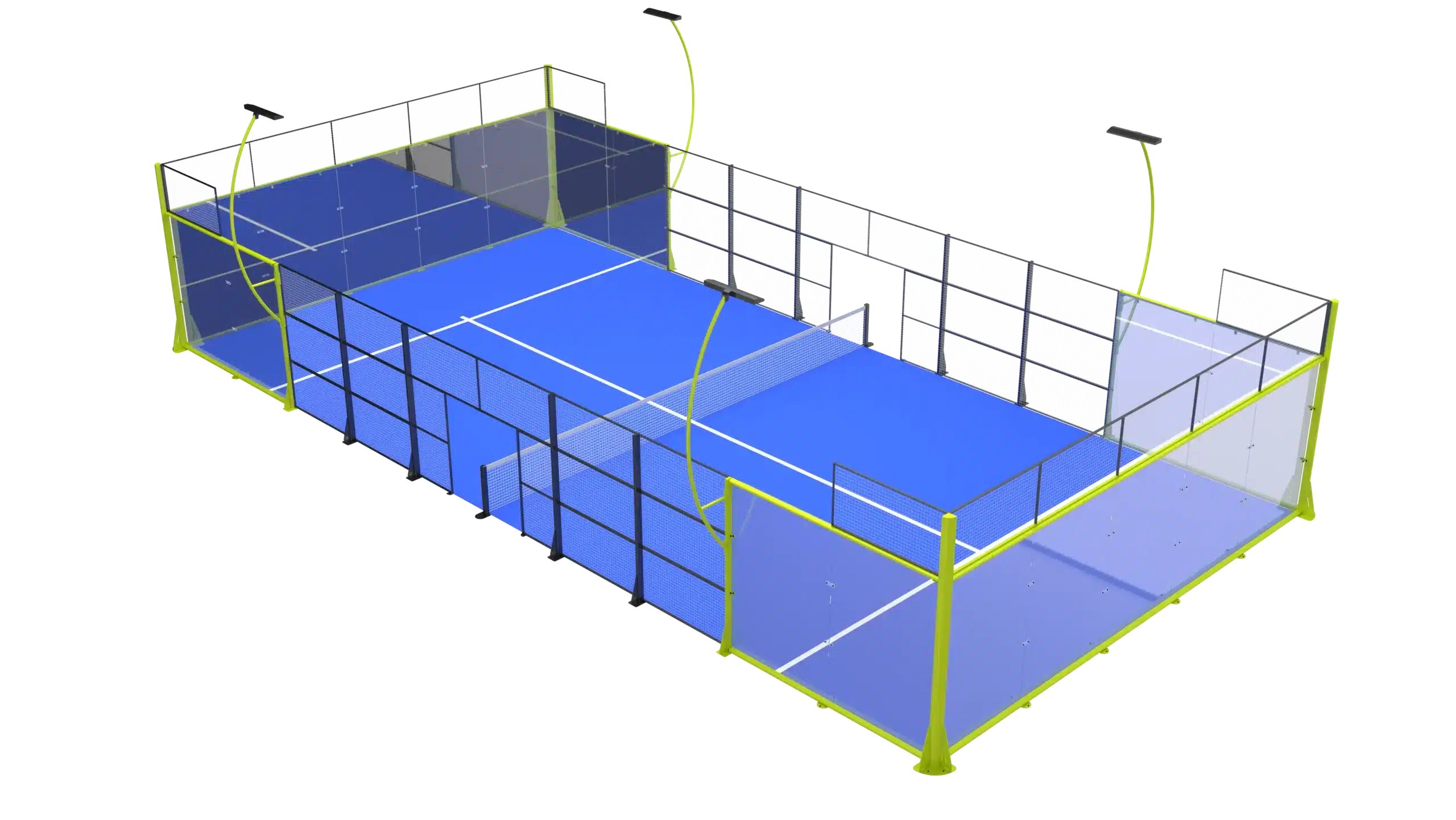 Des structures pensées pour la performance, la durabilité et le design. Nos courts de padel sont fabriqués à partir de matériaux haut de gamme. Chaque terrain est conçu pour offrir une expérience de jeu fluide, un confort optimal et une durabilité à toute épreuve.