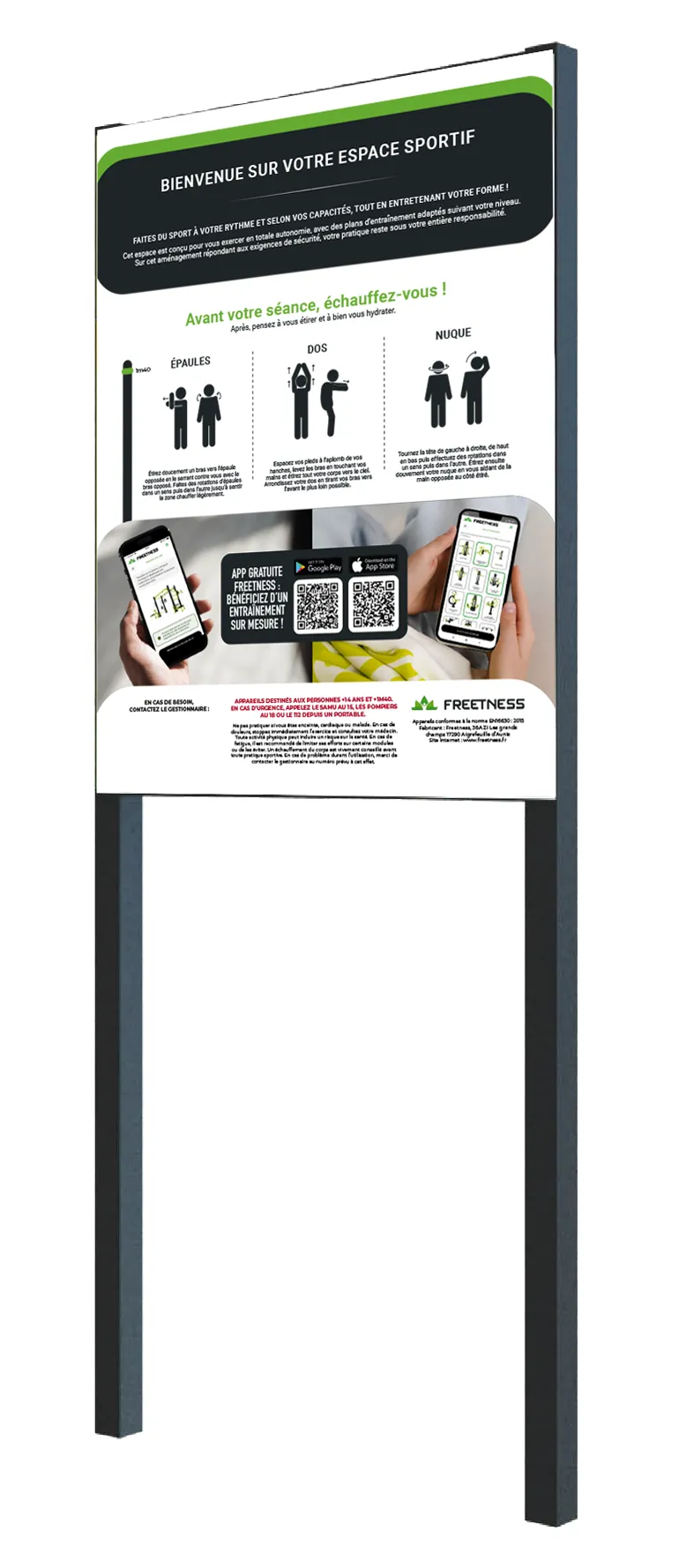 Conforme à la norme EN 16630, ce panneau intègre toutes les informations légales indispensables pour garantir la sécurité des usagers.
