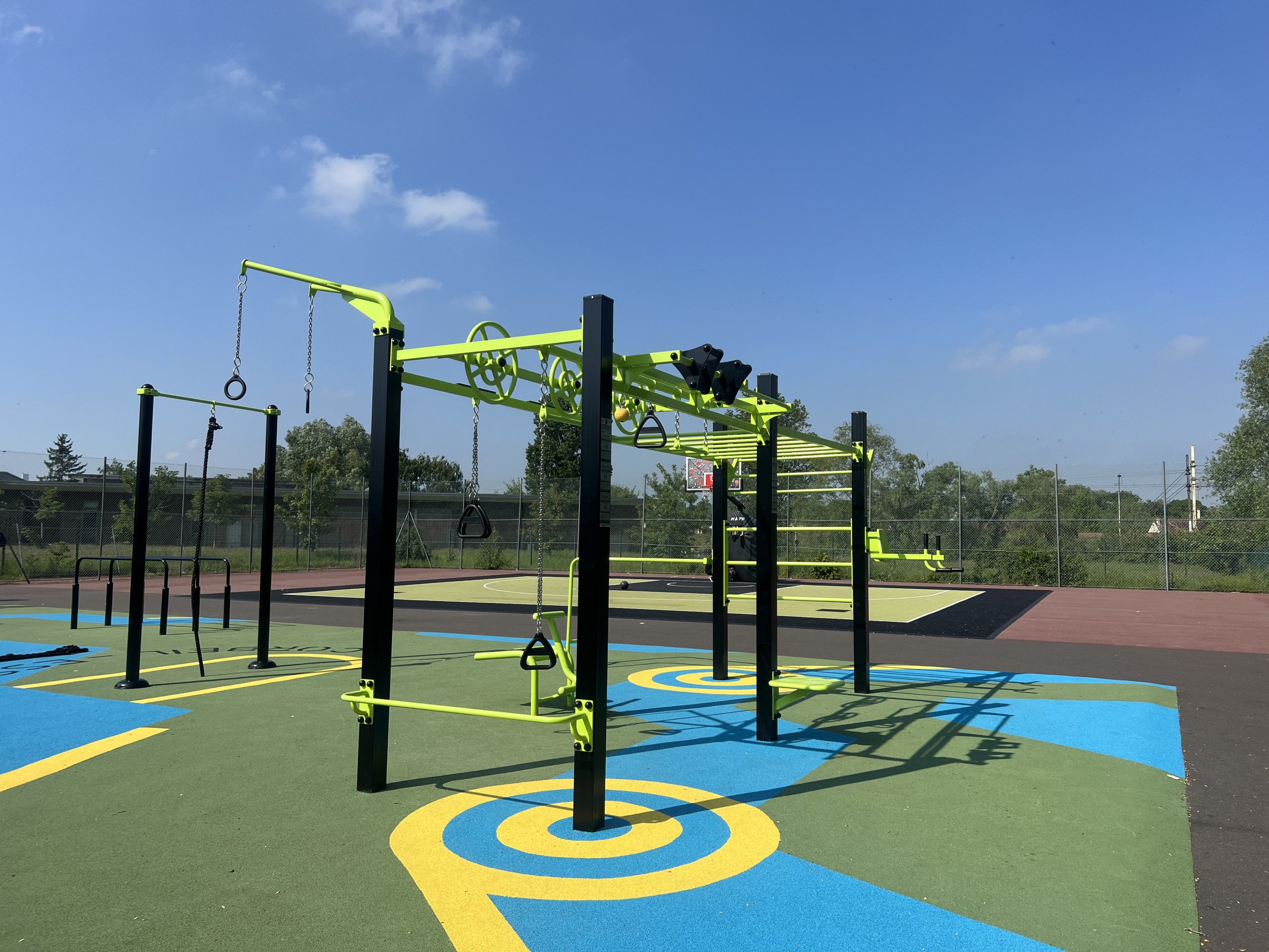 Vous souhaitez démarquer votre aire sportif des autres ? Arborez fièrement les couleurs de votre commune ou logo ! Chez Freetness, tous les coloris sont possibles. Faites personnaliser vos agrès et même vos sols pour une aire qui vous ressemble. Consultez nos sols pour définir la meilleure option pour une aire sécuritaire et personnalisée.