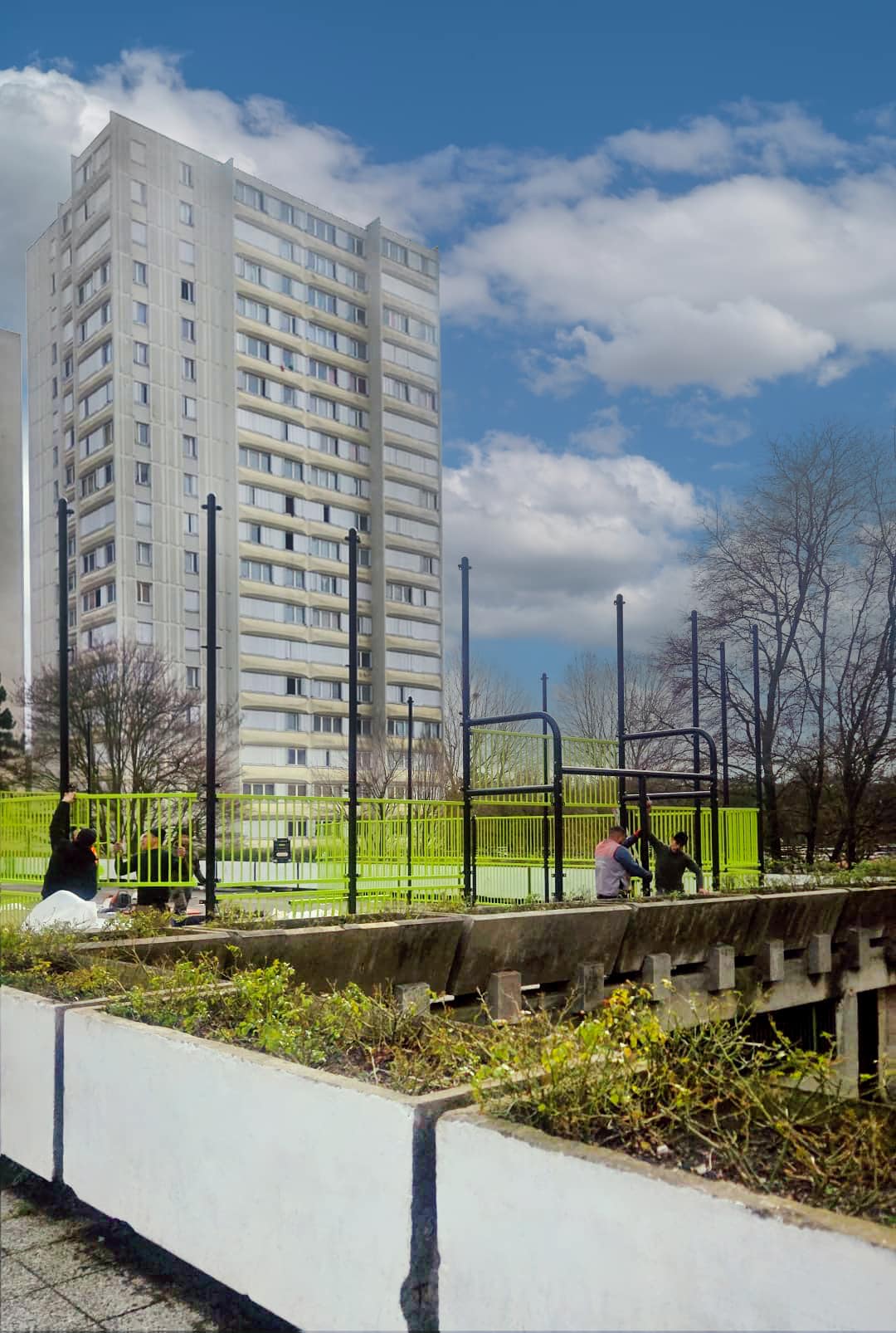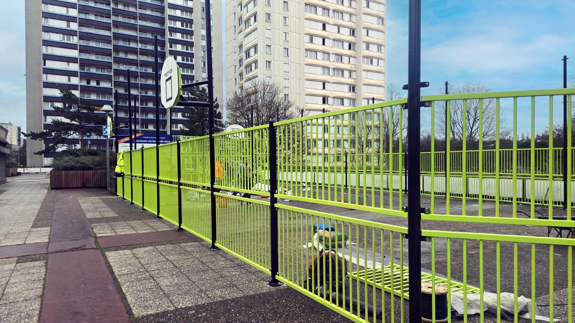 Afin de sécuriser la zone de jeu et de limiter les sorties de ballons, le terrain est complété par un filet pare-ballons périphérique ainsi qu’un filet de toit, optimisant la maîtrise des trajectoires et le confort d’utilisation en environnement urbain. Cette réalisation illustre l’engagement de la Ville de Bobigny en faveur du développement d’infrastructures sportives accessibles, durables et adaptées aux besoins des habitants.