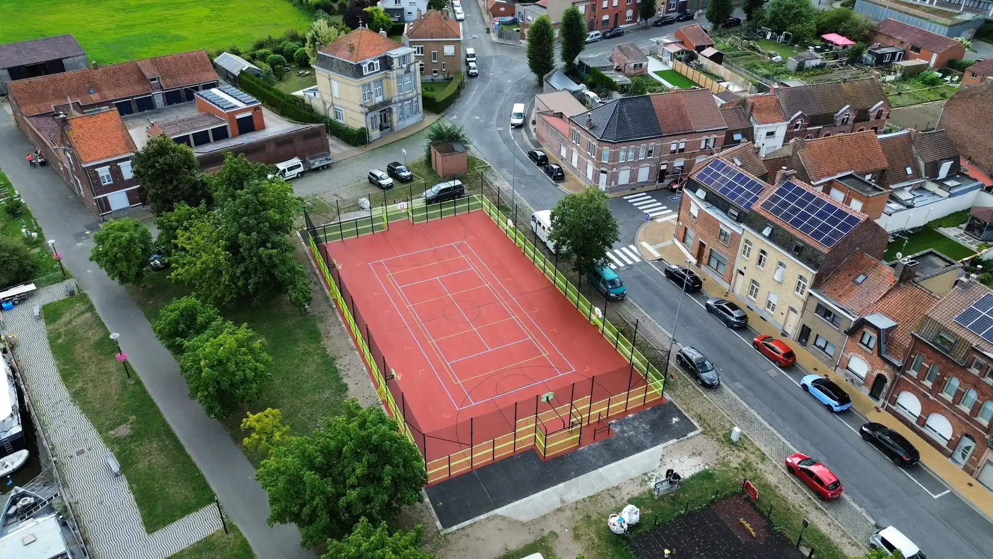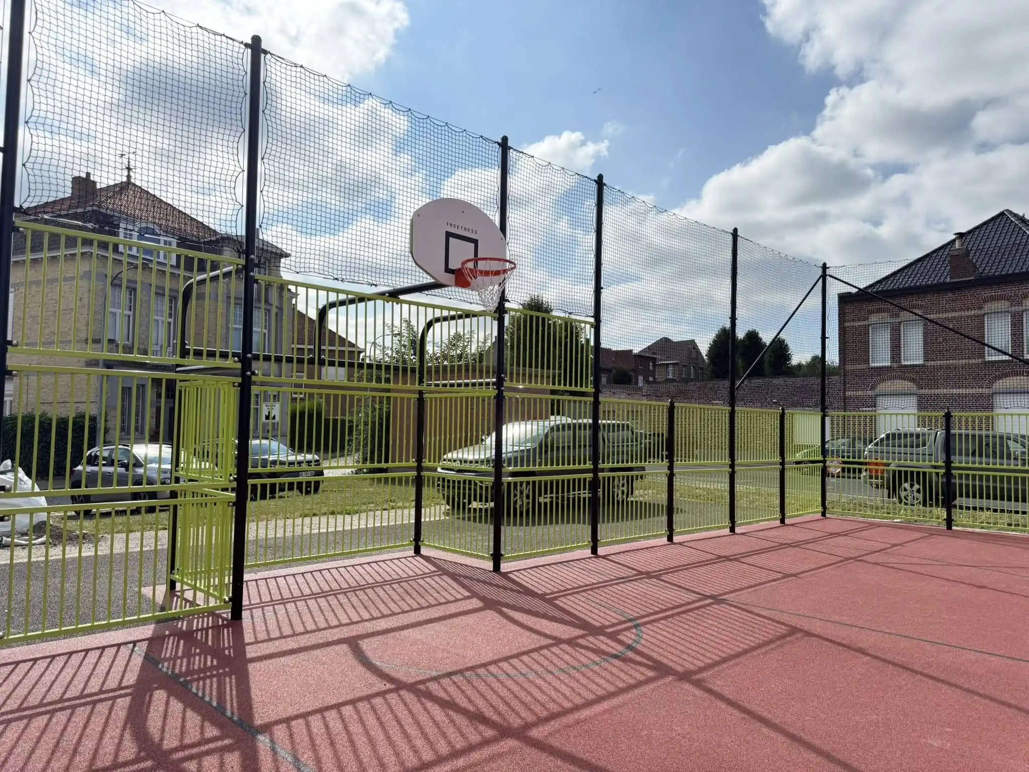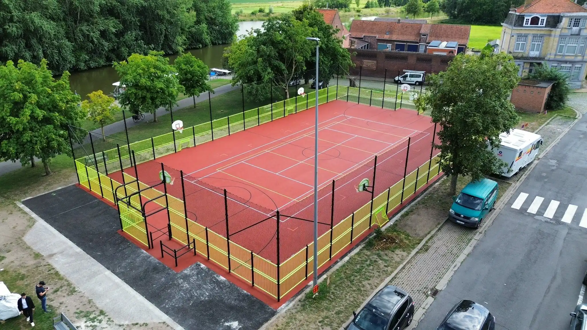 Freetness a installé un terrain multisports à Comines-Warneton en Belgique via notre distributeur partenaire SLG. Avec sa structure galvanisée noir et vert, ses barrières tubulaires, ce city stade format 24x32m dispose d'un marquage au sol multisports ainsi que de paniers de basket latéraux intégrés. Le sol enrobé permet un jeu dynamique et rapide pour des heures de jeu sans limites !