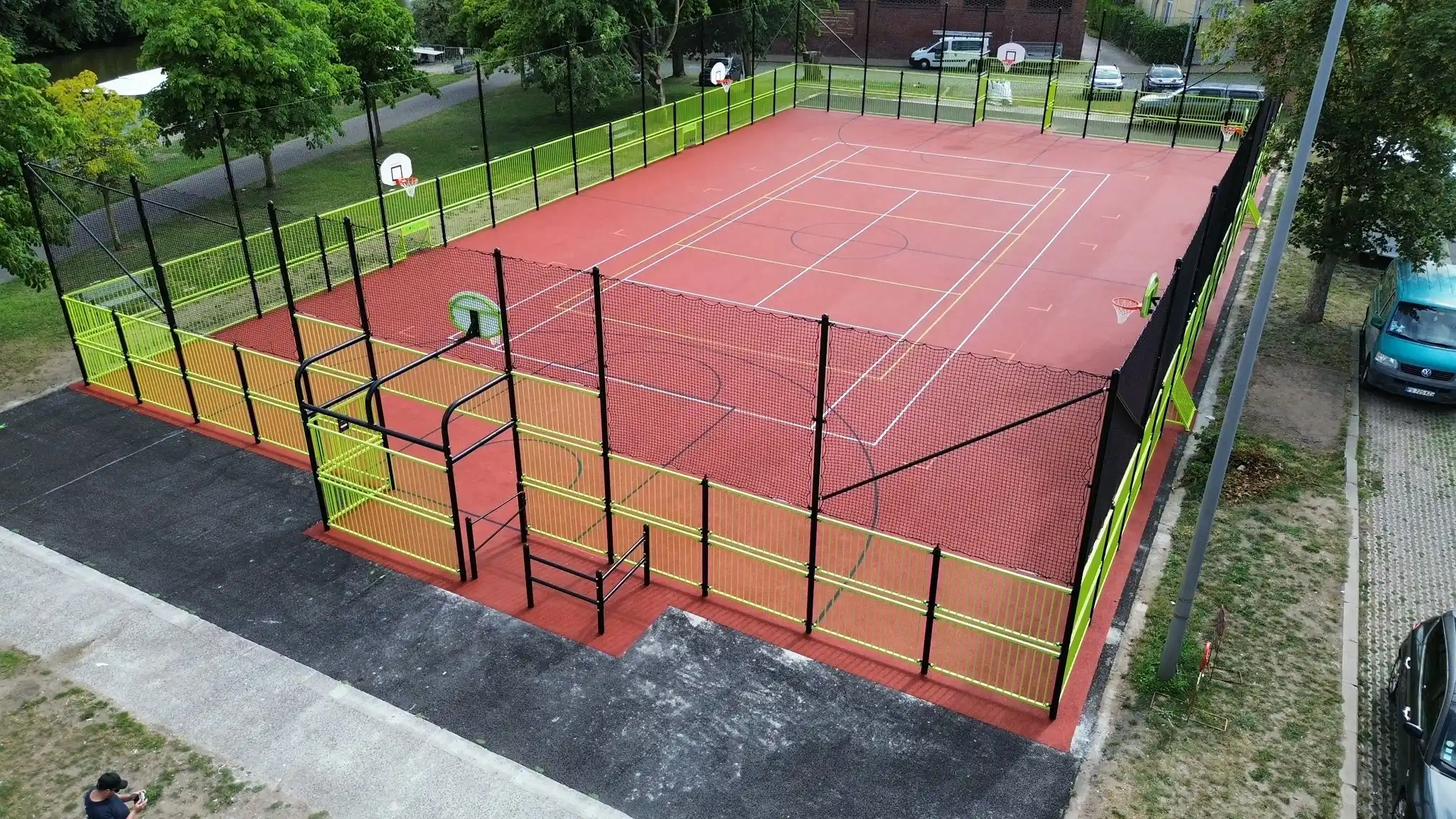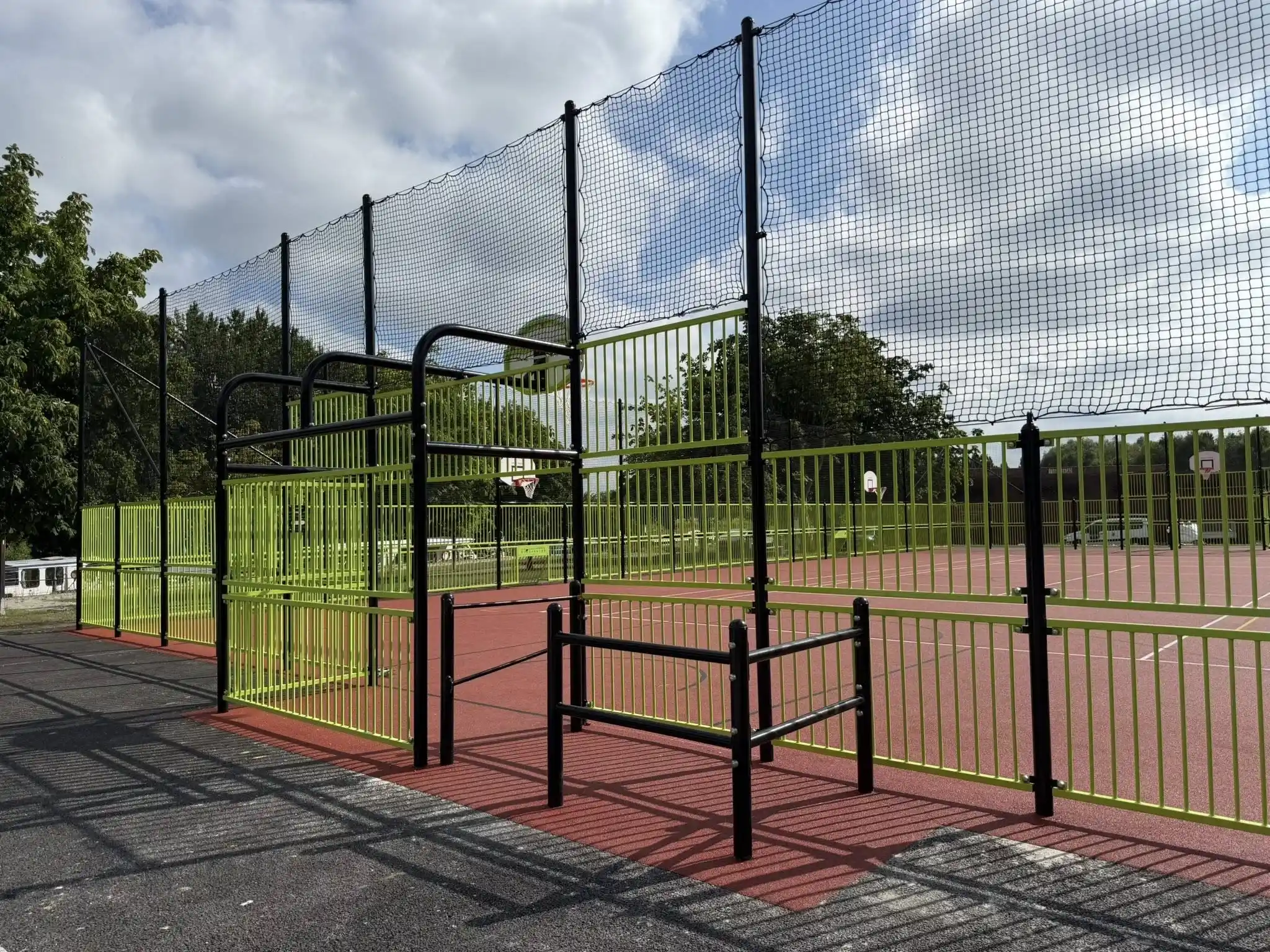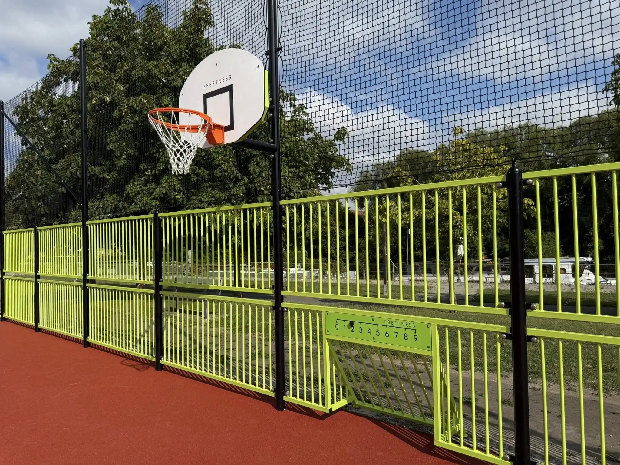 Freetness a installé un terrain multisports à Comines-Warneton en Belgique via notre distributeur partenaire SLG. Avec sa structure galvanisée noir et vert, ses barrières tubulaires, ce city stade format 24x32m dispose d'un marquage au sol multisports ainsi que de paniers de basket latéraux intégrés. Le sol enrobé permet un jeu dynamique et rapide pour des heures de jeu sans limites !