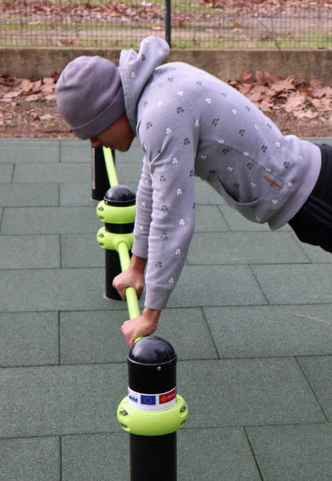 Combiné dips PMR est un équipement de Street Workout conçu pour les personnes à mobilité réduite. Idéal pour être aménagé une aire de Street Workout. Gamme Street Workout pour les PMR.
